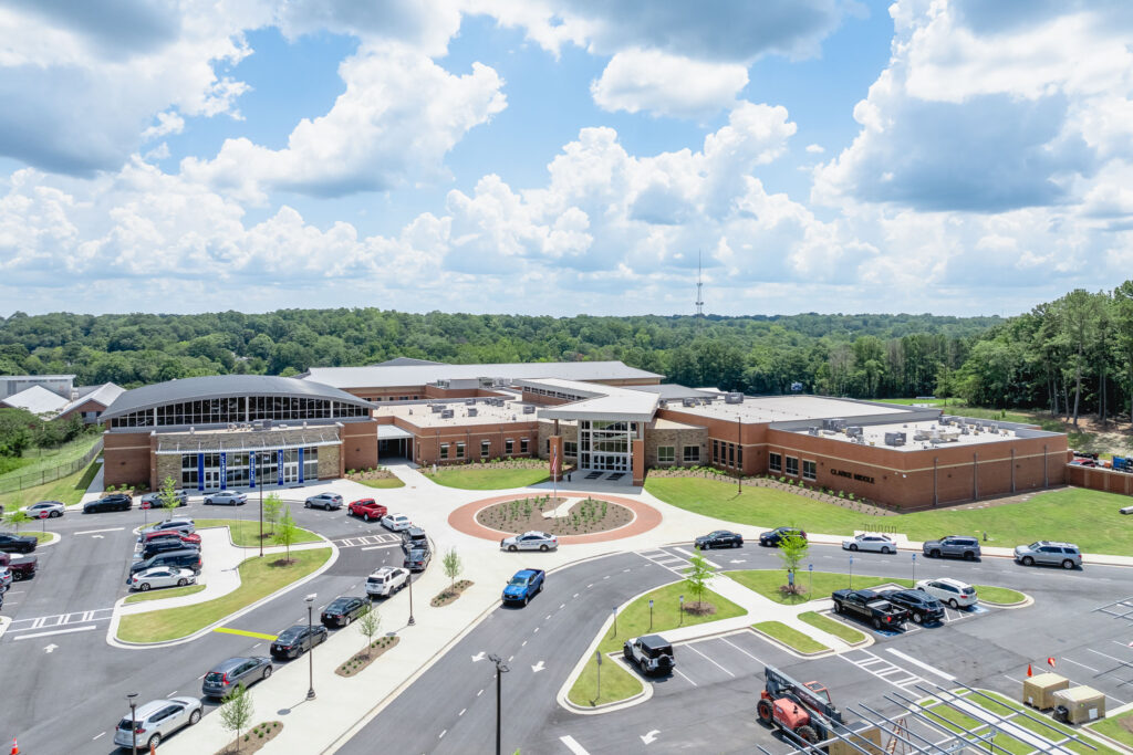Grahl Construction delivered the new Clarke Middle School through a 2½-year phased process, keeping the existing campus operational.