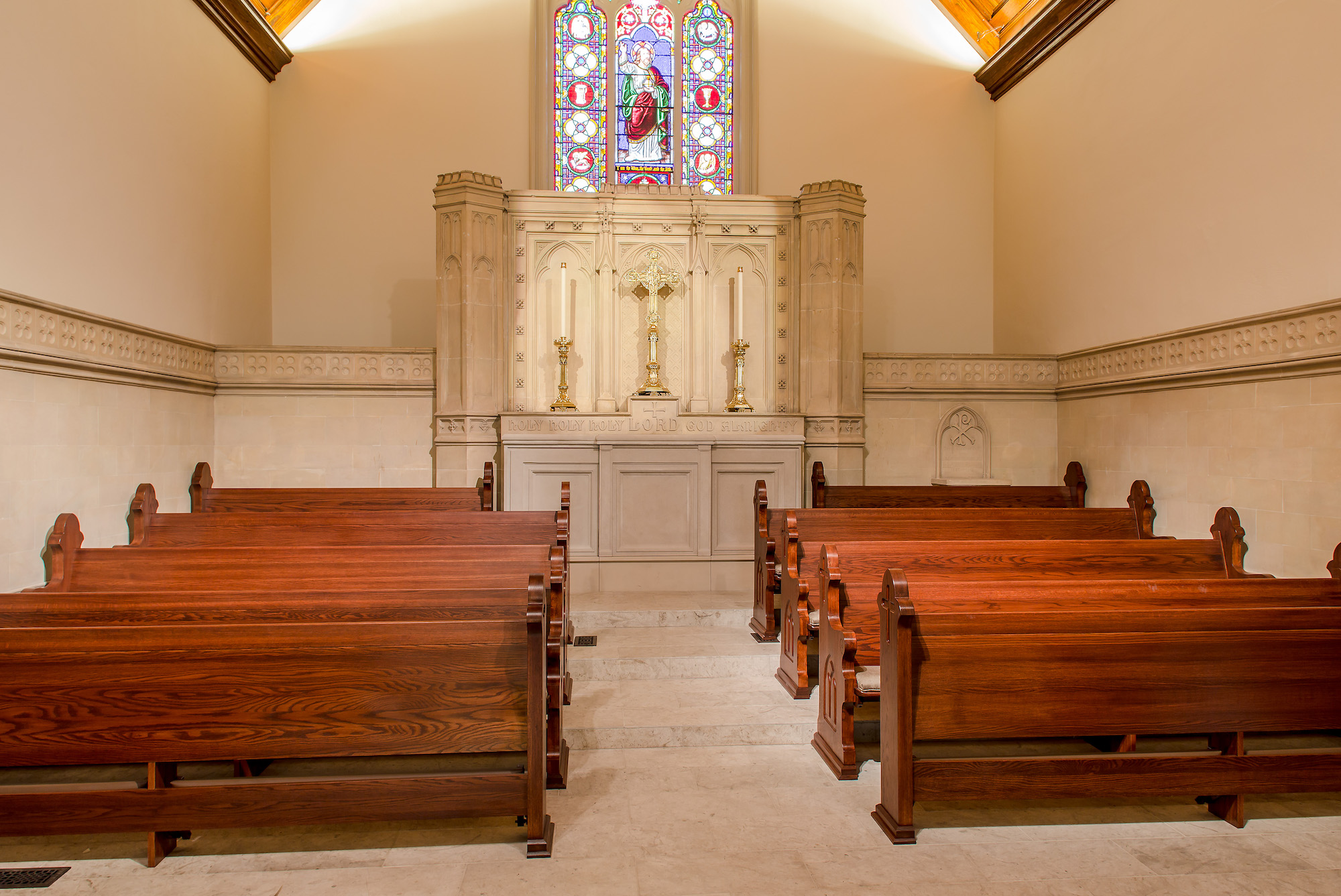 At Emmanuel Episcopal, the sanctuary was renovated to restore and enhance its sacred space, while the common room was updated to provide a more welcoming and functional area for gatherings. The project blends tradition with thoughtful improvements, creating spaces that support both worship and community life.