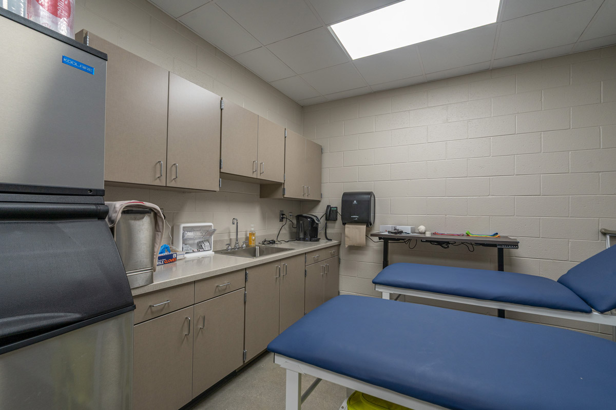 Key amenities include six (6) fully equipped locker rooms serving home and visiting teams as well as physical education classes. A centrally located concession stand provides convenient access to refreshments for spectators and participants. The facility also includes a dedicated training room designed for physical therapy, injury prevention, and performance enhancement, along with a laundry room to support the efficient handling of uniforms and athletic gear.